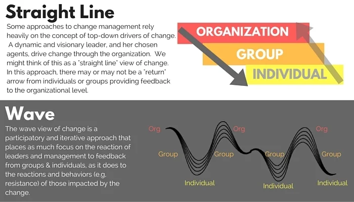 Wendy Hirsch is an organizational consultant who "works with individual leaders and teams to achieve clarity – about a challenge, a solution, a goal, a plan – and to use that clarity to organize their efforts to execute for better performance." I came across her work when searching for compelling visuals about change management. I absolutely love her wave of change visual. When organizational change happens, we react to it (we're human). This wave visualizes how important that cycle of reaction, resistance, and feedback is. So often we pretend this reaction doesn't happen-- but it does, and can make or break successful change.